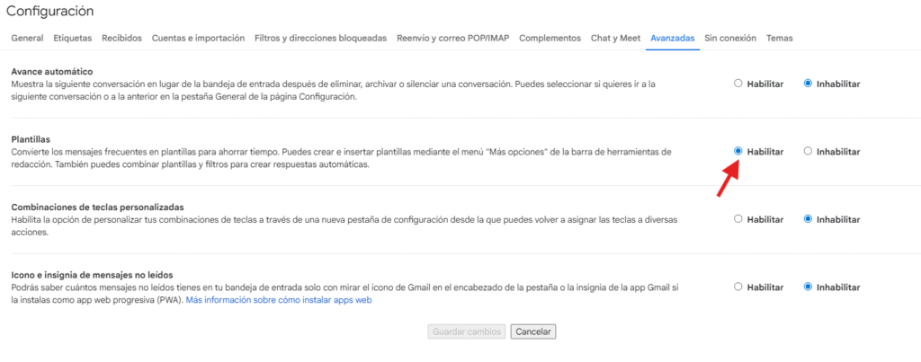Activar las plantillas en Gmail